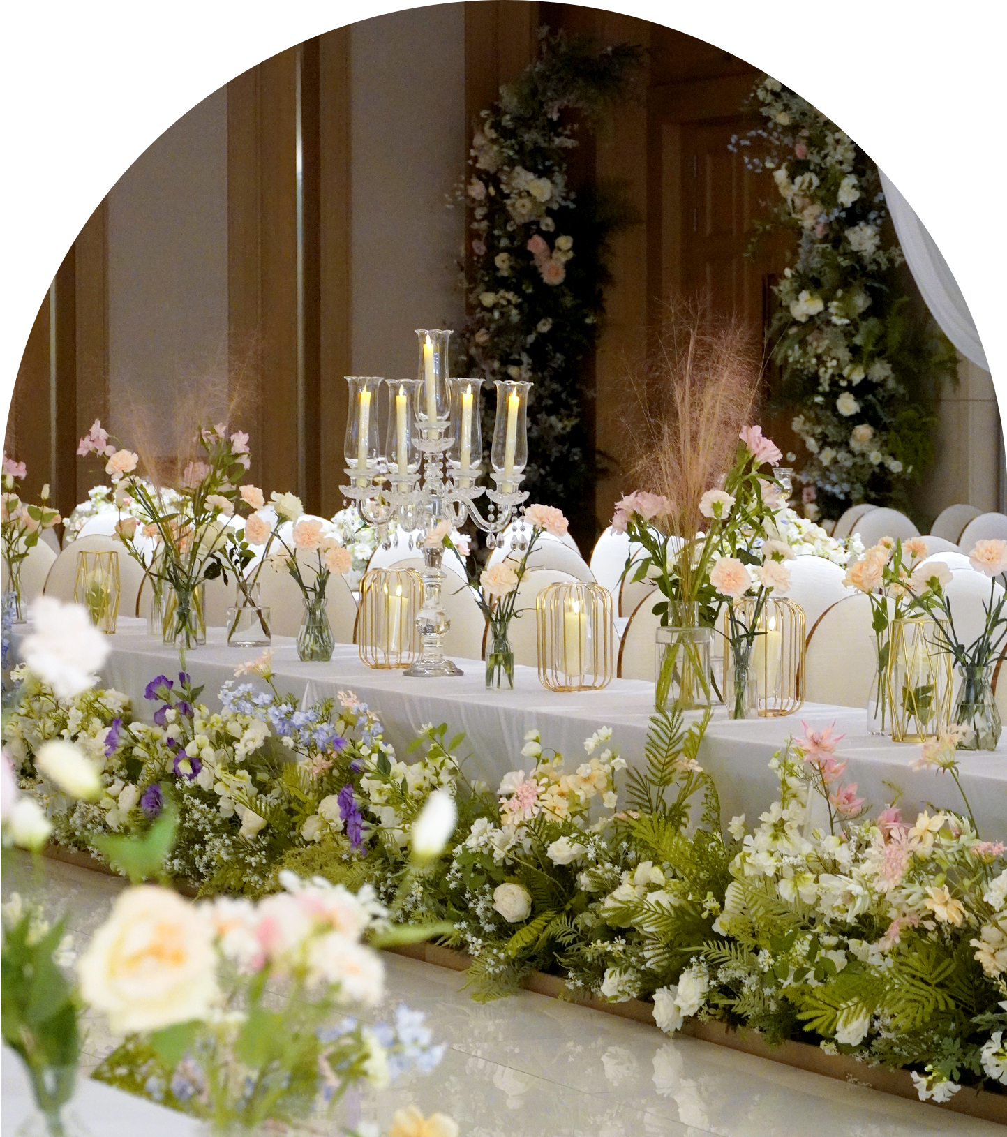 파티오벨라만의 감성과 진심을 담은 웨딩 연출이 돋보이는 홀 디자인.