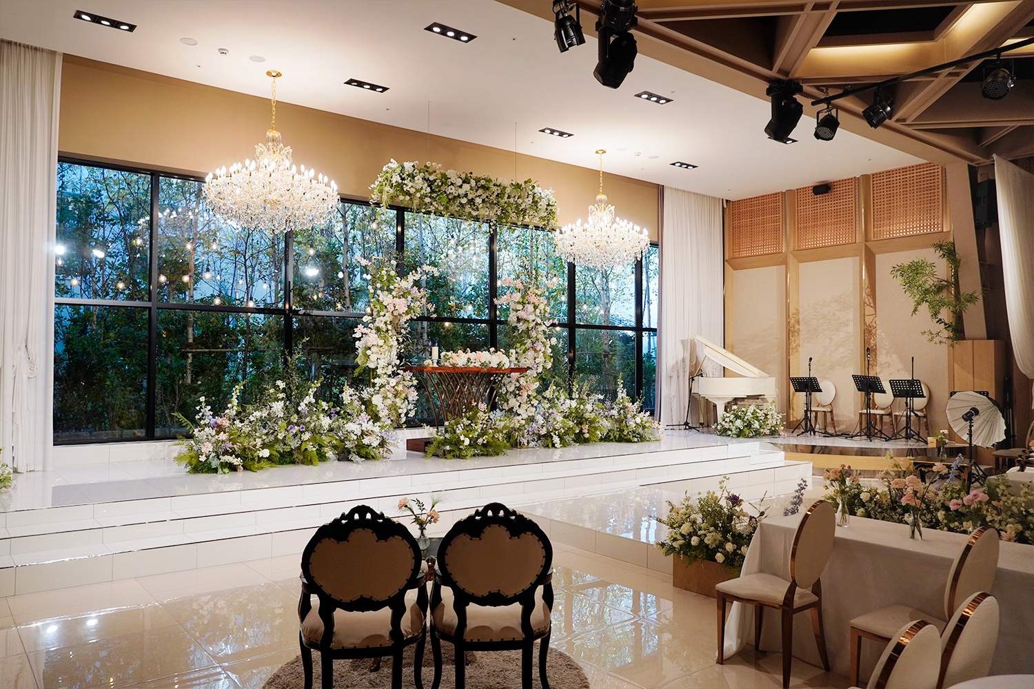 웨딩 연출이 돋보이는 홀 디자인.